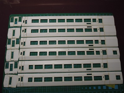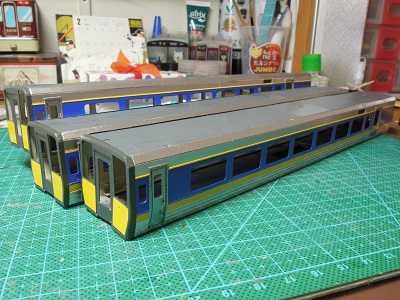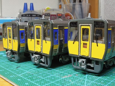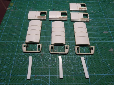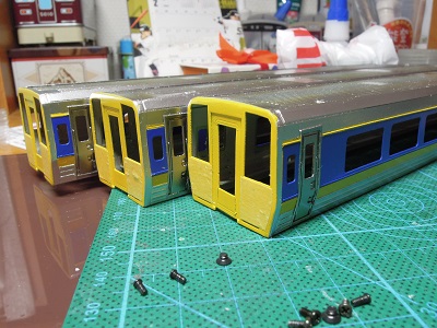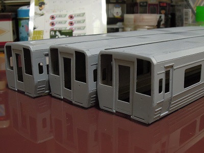 | ・車体箱組(2020/1/7〜2020/1/13) 3両分完了。 奥が1010番代用です。 |