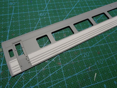 | ・車体箱組(2020/1/7〜2020/1/10) シール紙のビート部以外を剥がしている状態。 これにて凸表現が出来ます。 |