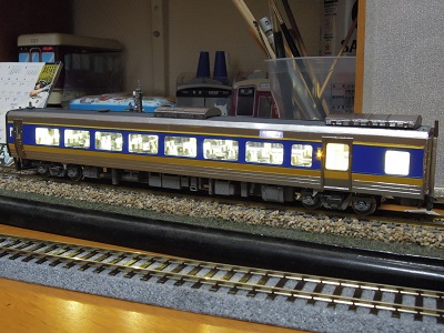 | ・車体組立(2020/4/12) 今回は指定席/自由席表示器を点灯化しました。 またデッキ部の照明の色味を少し変えています。 |