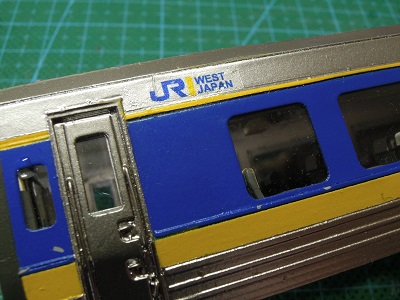 | ・車体組立(2020/4/12) JRロゴなどを貼り付けていきますが、デカールをインレタと 勘違いして擦り付け、誤って銀色を剥がしてしまいました。 ちょっと手戻り作業の発生です。 |