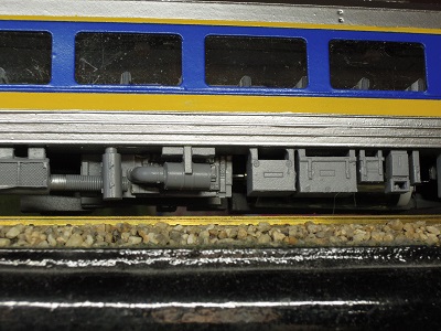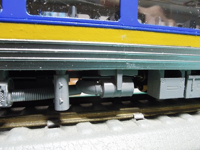 | ・車体塗装(2020/2/11〜2020/2/24) 振り子車両ということで、カーブ時に車体が傾くように 台車周辺に仕掛けを加えておきます。 |