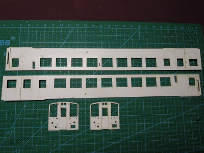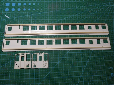 | ・車体箱組(2020/2/22) スカートを組み、手摺や各種パーツ類を取付けます。 |