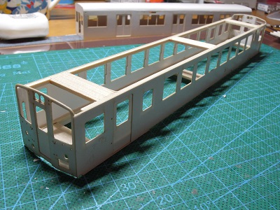 | ・車体箱組(2020/2/22) Aエンド側より俯瞰。 この後、塗装フェーズに入ります。 |