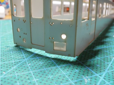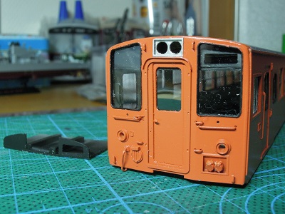 | ・車体箱組(2020/1/3〜2020/1/5) 電飾化に備え、ライトや方向幕に当たる部分をあらかじめ 削っておきます。 |