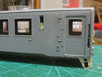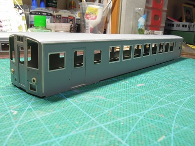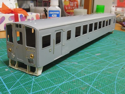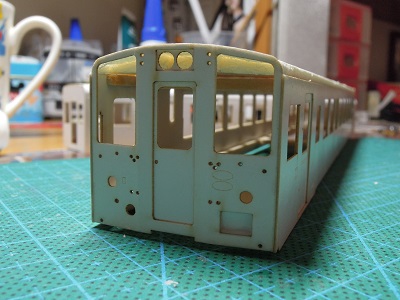 | ・車体箱組(2020/1/22〜2020/1/25) 仕上げに#1000のサフェを吹いたのち、窓枠、雨樋等の パーツを貼り付けていきます。 |
