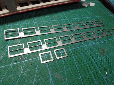 | ・車体組立(2020/3/29) 窓セルを貼付けていきます。 |