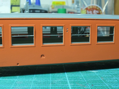 | ・車体組立(2020/3/29) サッシを貼付け。 |