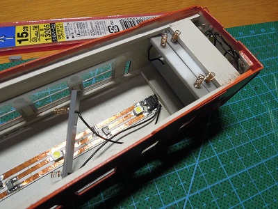 | ・車体組立(2020/5/1〜2020/5/5) 室内灯はLED4個。 光量的には問題なさそうです。 |