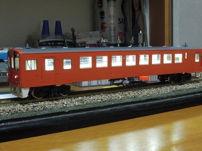 | ・車体組立(2020/5/1〜2020/5/5) 仕切を室内に入れ、床下と併せて導通確認です。 無事点灯するようです。 |