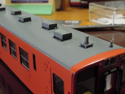 | ・車体組立(2020/5/18〜2020/5/19) ベンチレータ実装。 TOMIXの台座表現には及びませんが...。 |