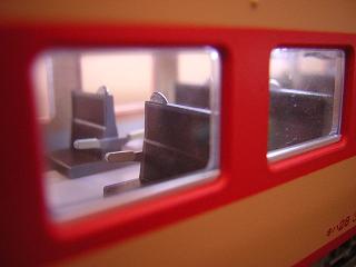 座席塗装 ・座席縁のグレーを吹いた状態。 グレーはGM9:ねずみ1号を吹いています。 |