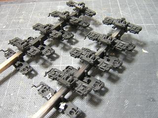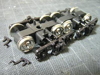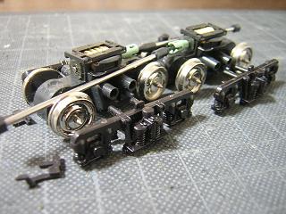 台車組立 ・塗装の終わった台車を組立てます。 写真は動力台車。 |
