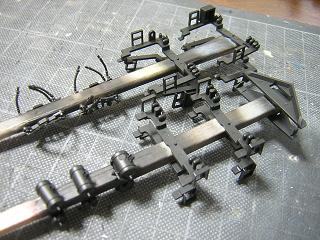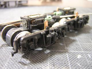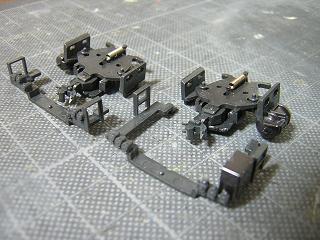 台車塗装 ・台車枠塗装完了 基本的に床下パーツは艶消し黒を吹き付けています。 |