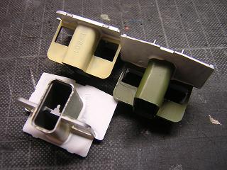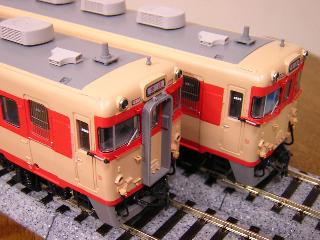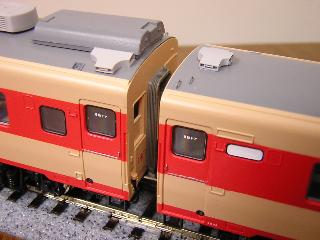 キハ58 ・モデルチェンジ車は、車体断面がキハ65と同じですので、初期車 とは異なります。 その結果、クーラーの取付け高さに違いがあるため、これを模型 でも再現します。 >TOMIXのNゲージでもしっかり違いが再現されていますので、 HOでは必須項目でしょうか...。 方法は、クーラー取付け台座にモールドされている2本の突起を 削り落とすことで表現します。 手前が、初期車用屋根。奥がモデルチェンジ車用屋根です。 突起の状態がわかるでしょうか。 >あと砂丘用キハ58-7209と652にも同処置を施す予定です。 2005-2/13 |