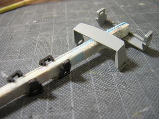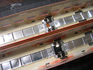 床下パーツ類分解 ・スカートやジャンパ栓類も同様に塗装するため、構成パーツを 分解します。 カプラーを除き、全て塗装します。 写真はモデルチェンジ車用。 |