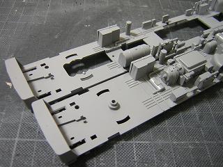 床板塗装 ・スカート塗装と合わせて、床板もGM9:ねずみ1号を吹いて、プラの 質感を目立ちにくくします。 |