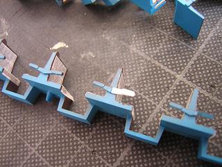 そして合体! ・@位側の補強板の高さがやや低いですが、目をつぶる事にします。 ゼリー状の瞬間接着剤で位置決めを行い、その後液体瞬間接着剤 を流して固定します。 乾燥後、接合面をパテ等で平滑処理を行います。 |
