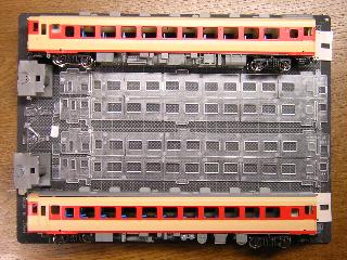 キハ58、キハ28(モデルチェンジ車) ・ガラス窓や屋根板を取りつけた状態。 完成まであと一歩ですが、車体と床板と組合せがしっくり行かず、 現在原因調査中です。 >>そのまま押し込めば、ちゃんとハマりました(^^;) |