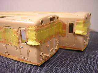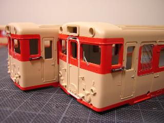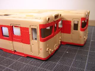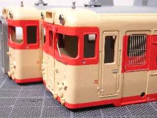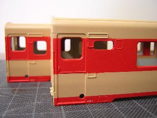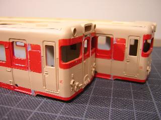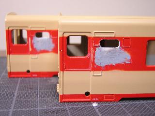 キハ58、キハ28(モデルチェンジ車) ・接合箇所をパテで成形・平滑にします。 |