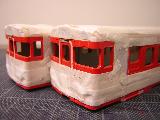 キハ58、キハ28 ・クリーム部分をマスキングして、メタルプライマ-を吹いた上で、 モリタの赤11号を吹きます。 やはり、赤系塗料は隠ぺい力が弱く、パテ跡が消えるまで、 結構重ね吹きしました。 |