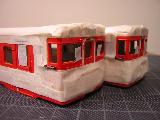 キハ58、キハ28(モデルチェンジ車) ・赤11号塗装完了。 補強板の高さは、最初低く思いましたが、そうでもなさそうです。 |
