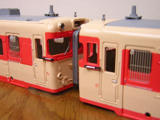 キハ58、キハ28(モデルチェンジ車) ・左のキハ58水タンクはエンドウ製パーツ(ホワイトメタル)を使用 しています。 キハ58の半ガラベンチレータは、キロ用を、キハ28のガラベンは スハ43のパーツを使用しています。 |