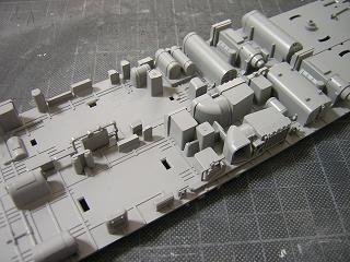 | ・床下塗装 エンジン類などのパーツもGM9:ねずみ1号を吹いています。 ニュートラルグレー等で色調を変えたほうがよかったかもしれません。 |