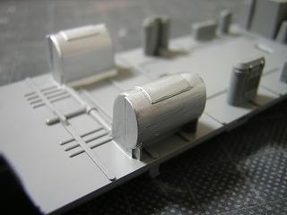 | ・屋根塗装 キハ58-7209用の屋根塗装完了。 水タンク部の切り継ぎは目立たなかったようです。 なお塗料はGSIクレオスB504:メタルプライマーを吹いた後、 GM9:ねずみ1号を使用しています。 |