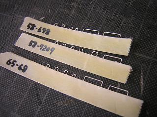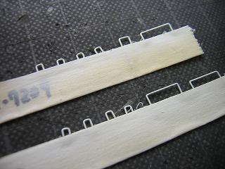 | ・キロハ28−103車体組立 仕切り壁を作りますが、t=0.5mmのプラ板に、TRCの701D氏から 頂いた仕切り壁のデータを印刷して貼り付けています。 |