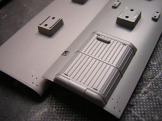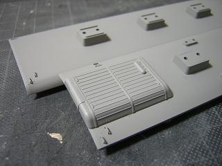 | ・屋根塗装 屋根を再塗装します。 クーラーなどは屋根板に比較すると薄めのグレーの整形色で、 メリハリが付いて良いかなと思い、従来はそのままとしていました。 しかし、イメージとしては同色かと思い、今回塗装することにしました。 |