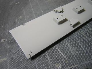 | ・手摺作成 下地塗装として、マッハのシールプライマーを吹いた後、 マッハNo.22:冷蔵白を吹いています。 |