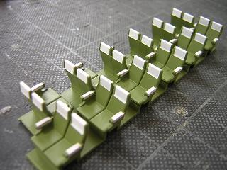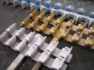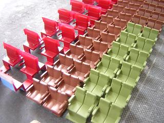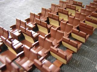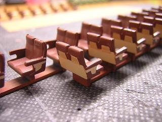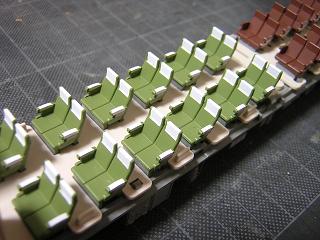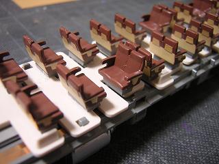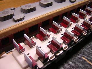 | ・座席塗装 ボックスシートも、肘掛などに色差しをしておきます。 |