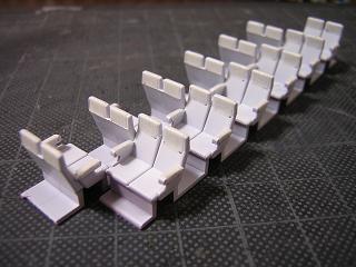 | ・キロハ28−103座席実装 こちらも同様です。 ハ座はシートピッチが変わっているので、全て切り離して 一つずつ接着しています。 シート下のスペーサーもキハ65と同様です。 |