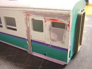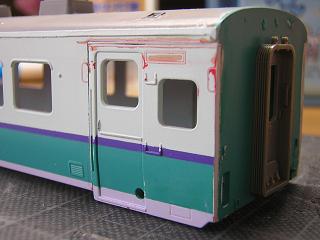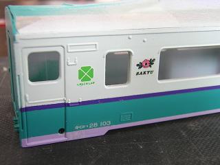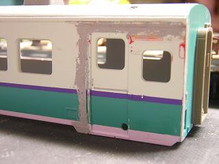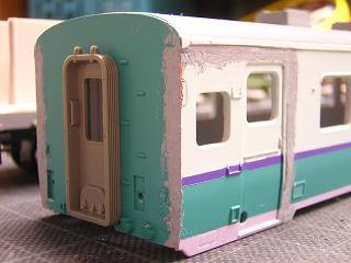 | ・キロハ28−103車体加工 パテで継ぎ目処理を行います。 |