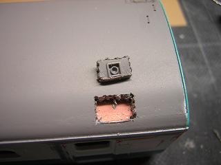 | ・キロハ28−103屋根加工 排気孔部もパテで平滑処理を行っておきます。 |