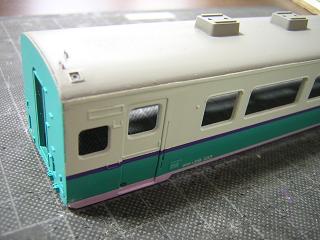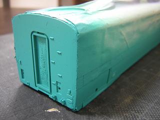 | ・キロハ28−103車体加工 こちらも同様に継ぎ目をパテで埋めて、平滑処理を行います。 |