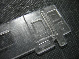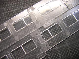 | ・キロハ28−103窓ガラスパーツ加工 ドア近辺には、床板をとめる爪穴(凹)がありますので、それを残して カットしています。 |