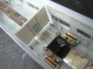 | ・キロハ28−103車体組立 仕切り壁を実装します。 側面をゴム系接着剤で止めています。 |