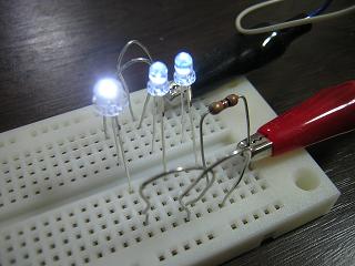 | ・室内灯のLED化 今回の更新にあわせ、室内灯ユニットを従来の電球タイプから 白色LEDタイプに交換します。 製品のユニットを購入しましたが、近くの電子パーツ店でLEDを 購入できたことと、電球タイプのライトユニットが余剰となって しまうことから、従来ユニットのLED化を行うことにしました。 KATO製はチップLEDを採用していることもあり、光量アップも 期待しています。 写真は購入したLEDの点灯テスト。 |