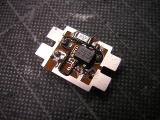 | ・種別表示幕の白色LED化 キハ58とっとりライナーと同様に、種別表示幕を電球から 白色LEDに変更します。 市販のユニバーサル基板にダイオードブリッジとチップLEDを 実装します。 なお、電流制限抵抗は1.0kΩのチップ品を実装しています。 |