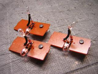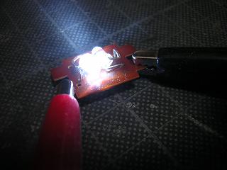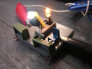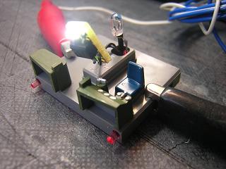 | ・ライトユニットの試験点灯 配線したライトユニットの試験点灯。 写真は前進状態。 |