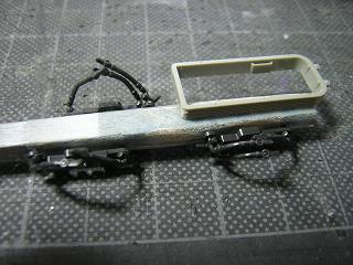 | ・手摺作成 前面の手摺類を作成・下地塗装を済ませておきます。 真鍮線はいつもと同じくΦ0.3mmを使用しています。 |