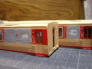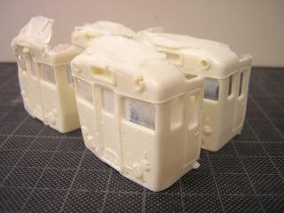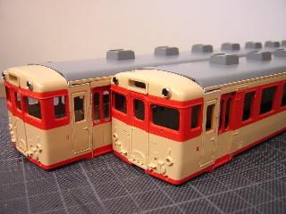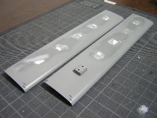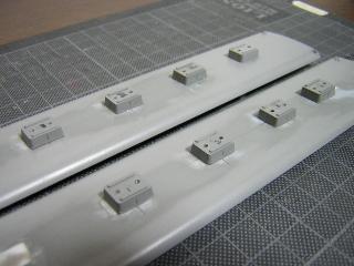 ・同様に中間車(711/1711)も貼付けます。 数が多いので、1日作業となりました。 硬化後、ペーパ-等で表面や形を整えていきます。 |