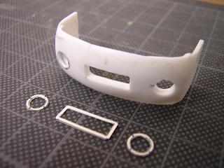 ・ライト類の縁取りは、瞬間接着剤を使用しています。 この後、サフェイサーを吹き、ペーバー部を中心に平滑処理を 行います。 段や傷は合わせてパテ等で修正し、後日シリコンの海へ投入です。 つづく 2005-4-17 |