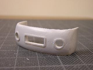 ・ということで、まずは試作から。 なくなった運転台の変わりに、こんな物をつけてみようとプラ板で 作ってみましたがあえなく撃沈(^^;) t=1.0mmのプラ板を、熱を加えながら、だましだまし曲げてみましたが、 肩のR部で クラックが入ってしまいます。 また、全体にくせがつきにくく、あえなく断念しました。 |