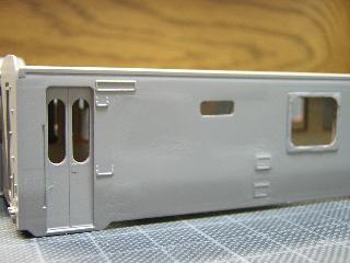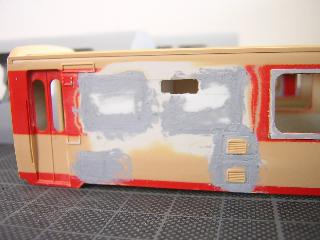 ・キハ65-711 トイレまわりです。 同様に若干窓埋め部に段差が見えますので、再度 パテ盛り→削りを繰り返していきます。 >中々進みません。 '05-6-19 |