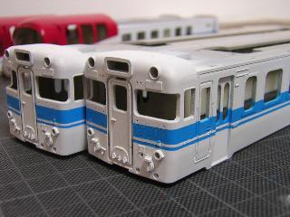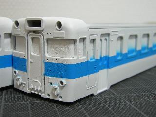 ・キハ65-1701(左)/701(右) この後、再度マスキングを行い、細い白線を再現します。 |
