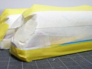 ・キハ65-1701(左)/701(右) マスキングを剥がした状態。 はみ出し等はあとで修正します。 >アクリル系は渇きが遅く、乾いたあとも、やや粘性を持った 感じがします。 |