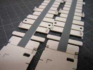 ・室内にも色差しを行います。 通路部は濃色系のカーペットが敷かれていますので、塗装で 表現します。 塗料はGM35(ダークグレー)を使用しています。 |