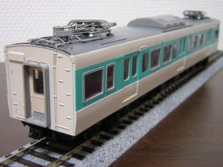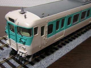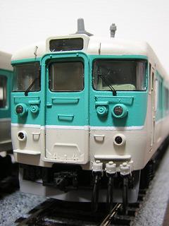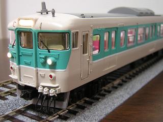 | ・クハ111-7706 前面のタイフォンはTOMIXの455系用パーツから回転式タイプを選択。 ワイパーは付属品を使用せず、エンドウ製(ワイパーA:No2703)を 使用しました。 また、手摺類はΦ0.3mmの真鍮線で作り直しています。 車側灯はモールドを削り、TOMIXの455系用クリアパーツを使用して みました。 |
